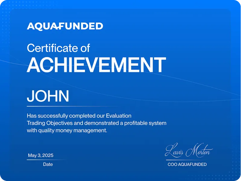 The AquaFunded Fast-Track Ticket is a special offer that grants you instant access to a funded trading account. By purchasing the Fast-Track Ticket, you bypass the traditional evaluation process and are guaranteed to pass the challenge, receiving your funded account and certificate immediately. It's a simple, fast, and efficient way to get started with trading, all while enjoying exclusive benefits such as a 30% discount on your ticket.
