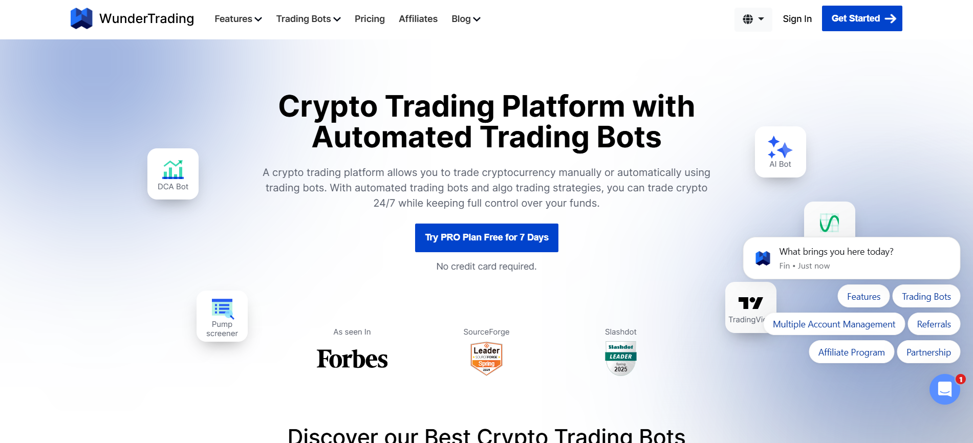 WunderTrading has carved out a niche as the best crypto auto-trading bot for Copy Trading and Spread Trading. While offering standard automation, social trading features let users transparently view professional traders' track records and automatically copy their moves. The platform provides DCA bots, market tactics, and TradingView integration to automate strategies across multiple exchanges in one unified environment.